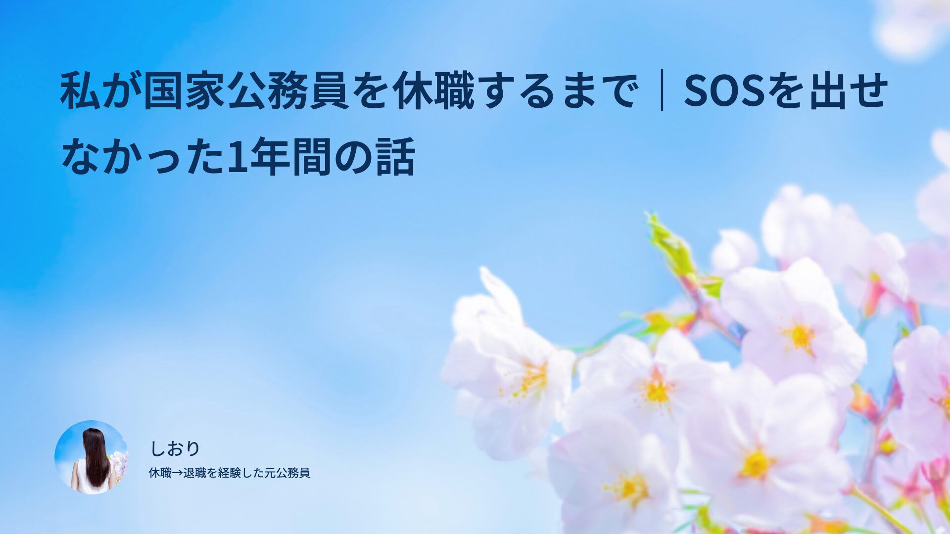 CATEGORY 体験談 休職から退職、そして今|元国家公務員しおりのその後 2026.04.24 体験談 door-of-life 国家公務員 休職・退職ノート 私が国家公務員を休職するまで|SOSを出せなかった1年間の話 2026.04.24 体験談 door-of-life 国家公務員 休職・退職ノート